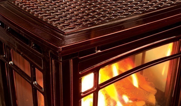 Available in both painted black and enameled antique chestnut, the Berkeley uses a high quality cast iron construction. Instead of a typical steel burner tube, the Berkeley uses a ceramic burner that blends in with the ultra high definition 9 piece ceramic log set, providing a natural looking burn