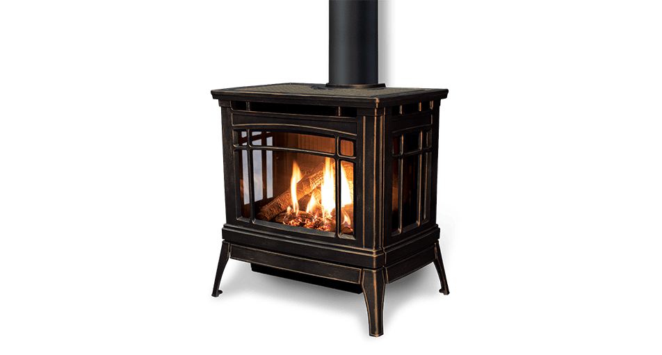 The Westley features a classic design, with a sturdy cast iron body and legs, and is capable of heating spaces up to 1,700 square feet. With a 180-degree viewing angle, it offers an impressive view of the fire. The ultra high-definition, eight-piece ceramic log set creates a natural-looking burn and a beautiful glow. Made with high-quality cast iron construction, the Westley is available in both painted black and antique bronze finishes.