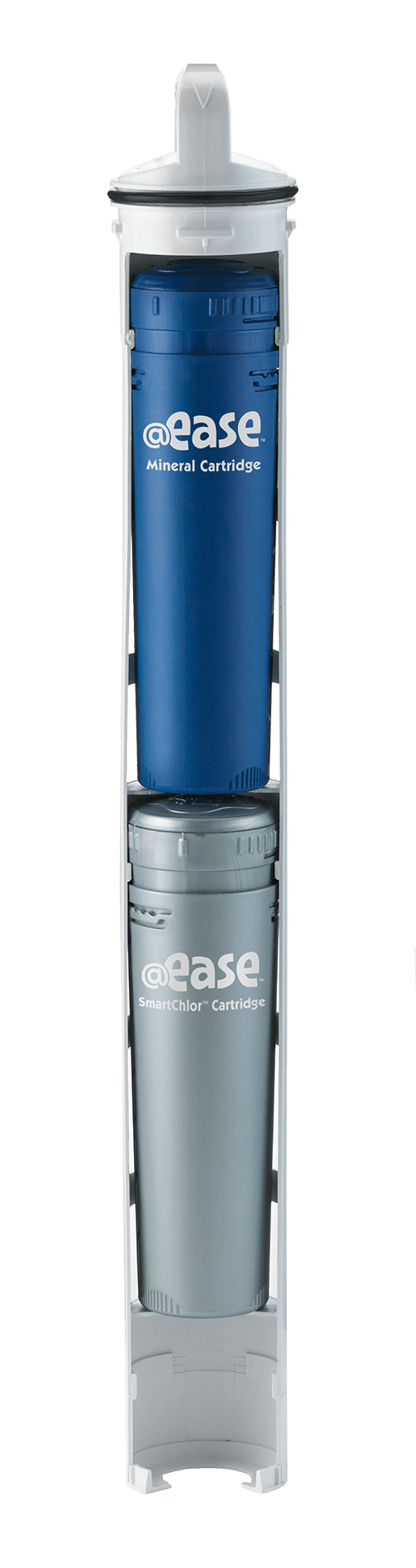 The Mineral cartridge lasts for four months, or until you drain and refill your hot tub. The SmartChlor cartridge lasts three to four weeks, depending on your tub’s size and how often you use it.